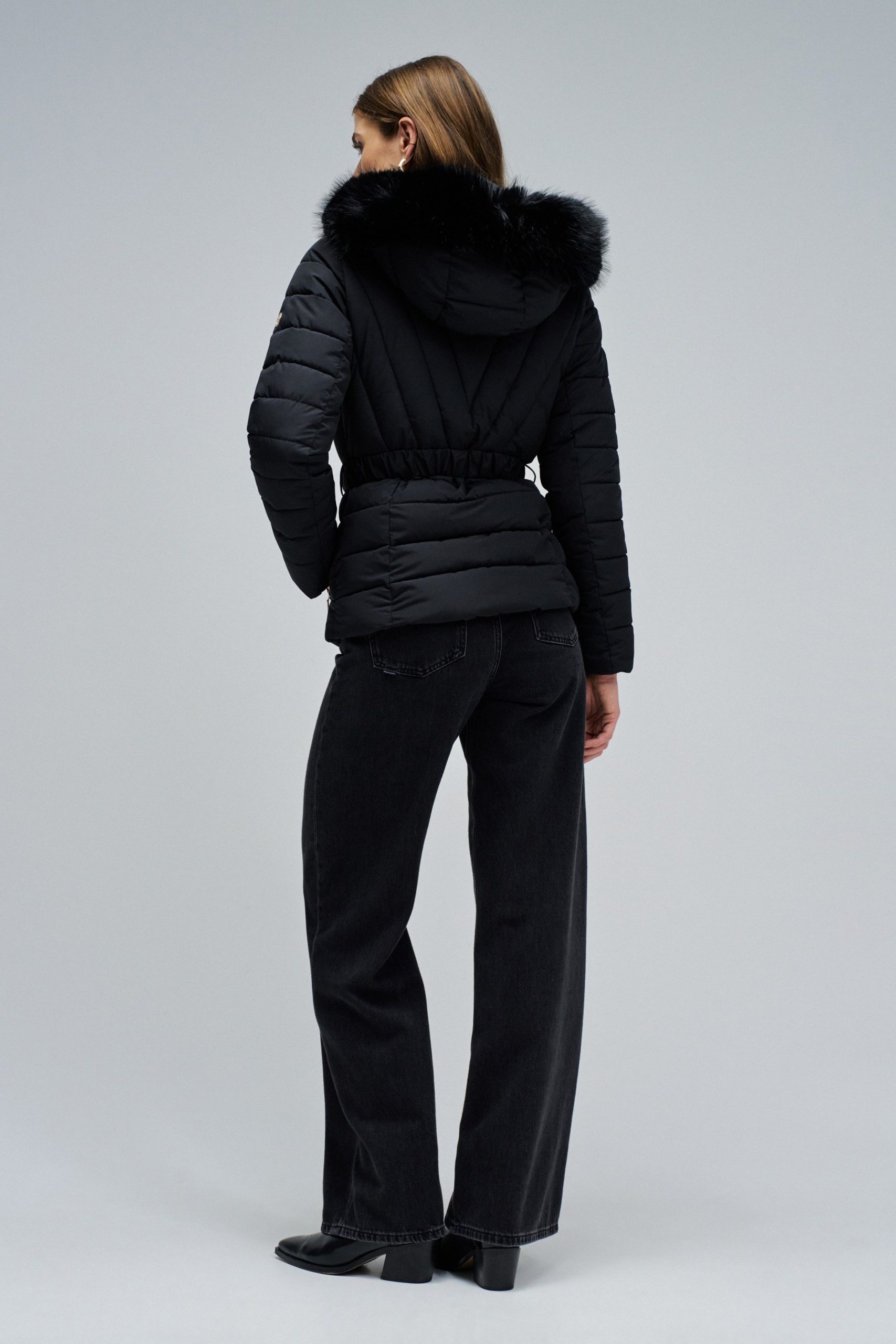 O casaco Jackie é uma nova versão do nosso puffer, delicado e, ao mesmo tempo, irreverente. Na sua versão cintada, foi criado para acentuar as curvas e realçar a tua silhueta, aliando elegância e funcionalidade. O cinto removível, permite ajustar a cintura para um look mais estruturado e personalizado. A abertura frontal é prática, com um fecho. O capuz removível adiciona uma camada extra para fazer frente aos dias mais frios, e pode ser retirado para um look mais minimalista. Feito com revestimento em nylon, o casaco é repelente à água e leve, enquanto o enchimento em Repreve®, composto por materiais reciclados, garante o conforto e o impacto ambiental reduzido.