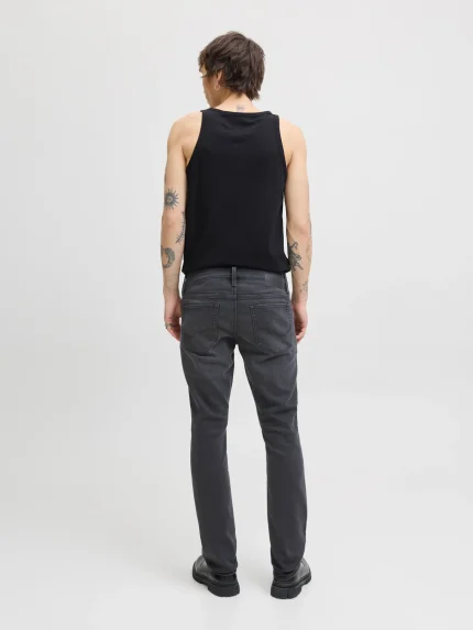 Jeans comfort fit com cinco bolsos. Fecho frontal com fecho zip e botão metálico.