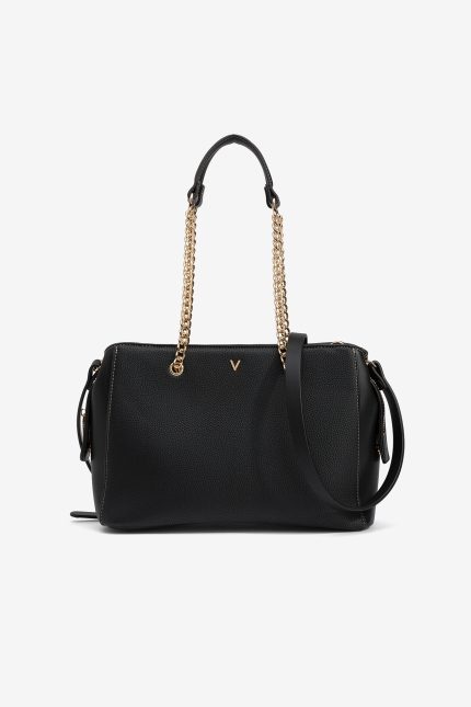 Mala de festa efeito pele granulada, com pala e fecho magnético.Duas alças tiracolo removíveis e e bolso interno com fecho de correr. Tamanho Pequeno.