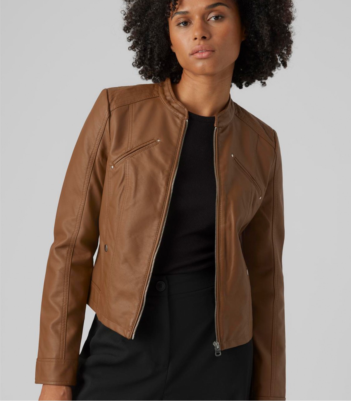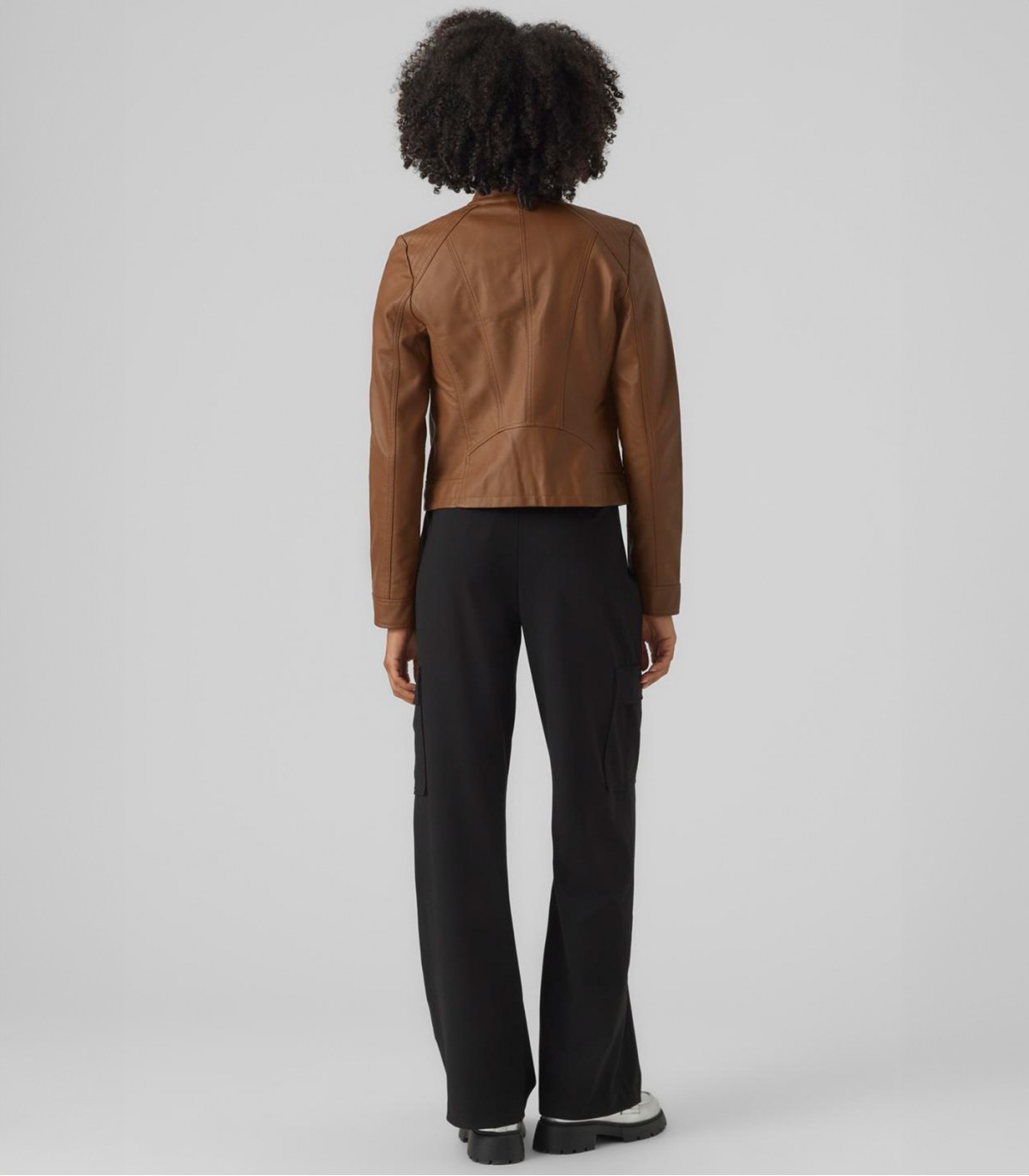 A jaqueta feminina de couro sintético da Vero Moda é elegante e moderna, perfeita para diversos looks.